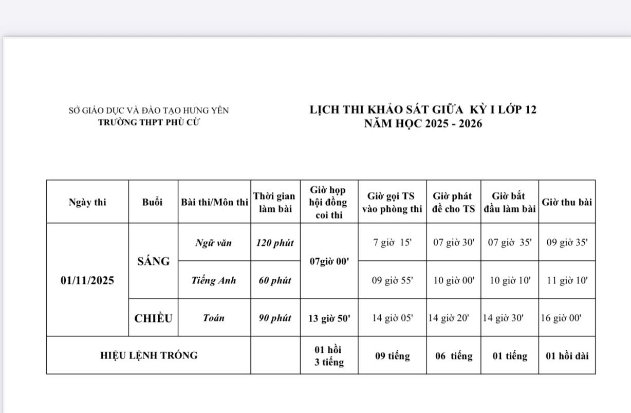 LỊCH THI, DANH SÁCH PHÒNG THI, SBD THI KHẢO SÁT KHỐI 12(25/10/2025)