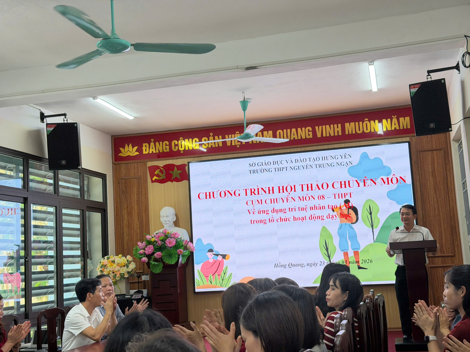 Thực hiện kế hoạch số 01/KH-CCM08 ngày 01/10/2025 của Cụm chuyên môn 08-THPT về kế hoạch tổ chức sinh hoạt chuyên môn năm học 2025-2026 lần 3 với chủ đề: “Ứng dụng AI trong tổ chức hoạt động dạy học và giáo dục” địa điểm tại trường THPT Nguyễn Trung Ngạn với 3 bộ môn chính: Toán, Lịch sử và Hoạt động Giáo dục địa phương. Trường THPT Phù Cừ được phân công nhiệm vụ dạy một tiết minh họa có ứng dụng trí tuệ nhân tạo AI trong dạy học và chủ trì buổi hội thảo môn Lịch sử chiều ngày 23/3/2026.
