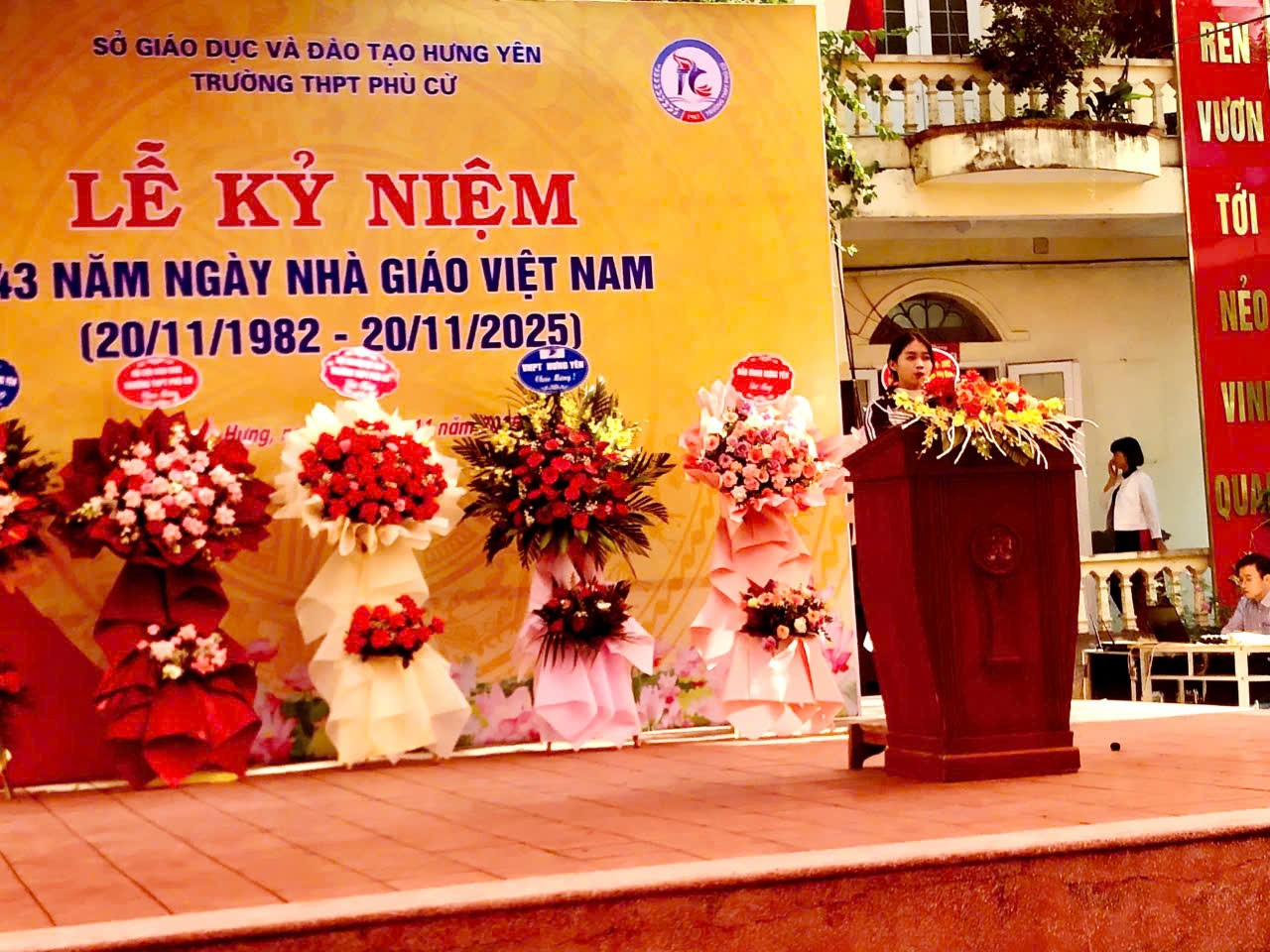 Hoà chung không khí chào mừng Ngày Nhà giáo Việt Nam 20/11 của cả nước, sáng ngày 20 tháng 11 năm 2025, trường THPT Phù Cừ đã long trọng tổ chức buổi mít tinh chào mừng Lễ kỉ niệm 43 năm Ngày Nhà giáo Việt Nam (20/11/ 1982 – 20/11/2025). Buổi Lễ là dịp để tri ân những cống hiến thầm lặng của các nhà giáo, đồng thời gắn kết tình nghĩa giữa thầy và trò.