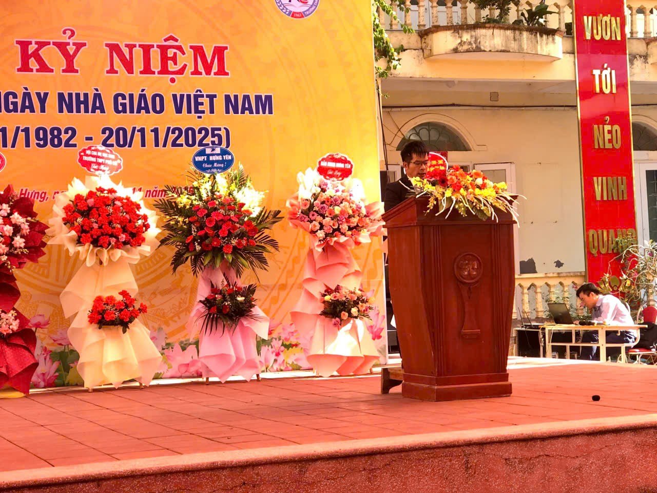 Tiếp nối chương trình, thầy Dương Văn Long - Bí thư chi bộ, Hiệu trưởng nhà trường, đã có bài diễn văn xúc động, ôn lại ý nghĩa thiêng liêng của nghề giáo, vai trò tiên phong của người thầy trong xã hội và khẳng định truyền thống "Tôn sư trọng đạo" ngàn năm của dân tộc Việt Nam.