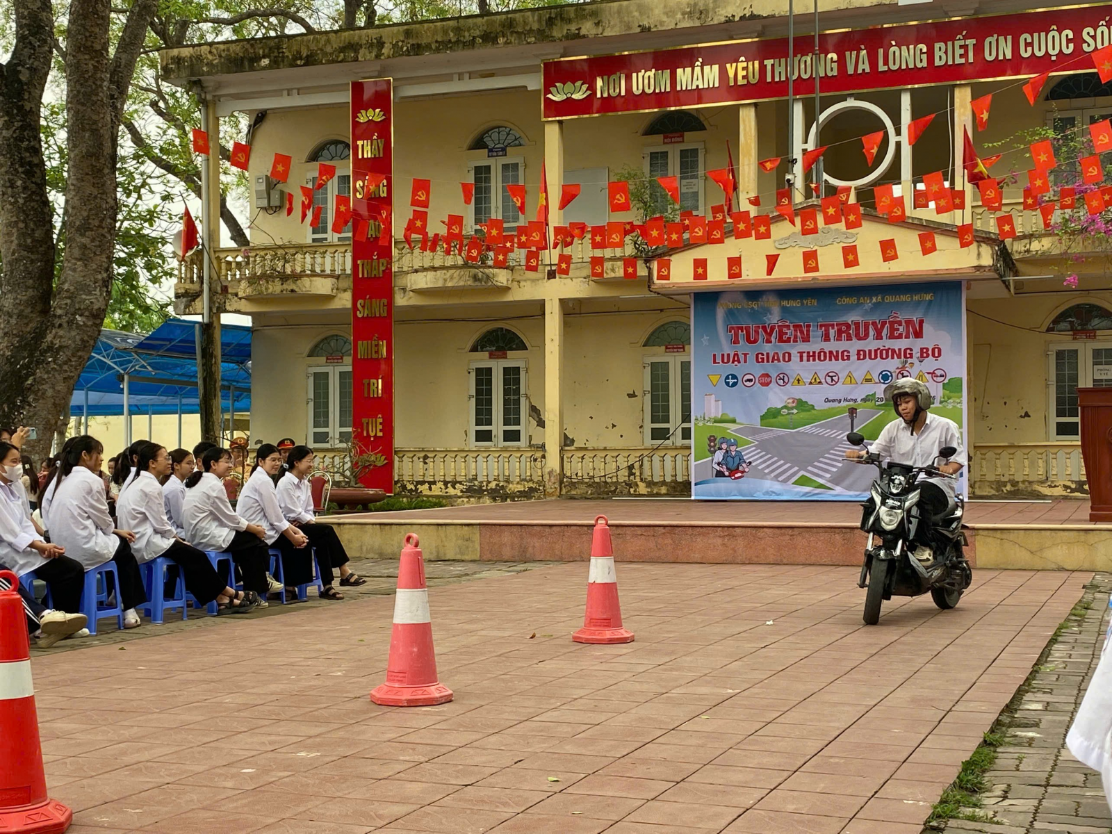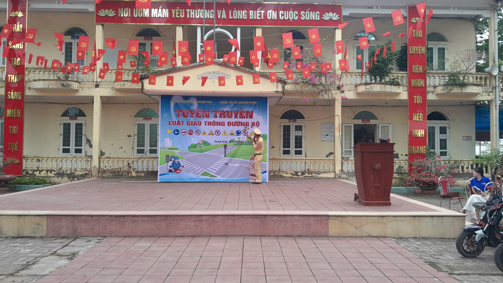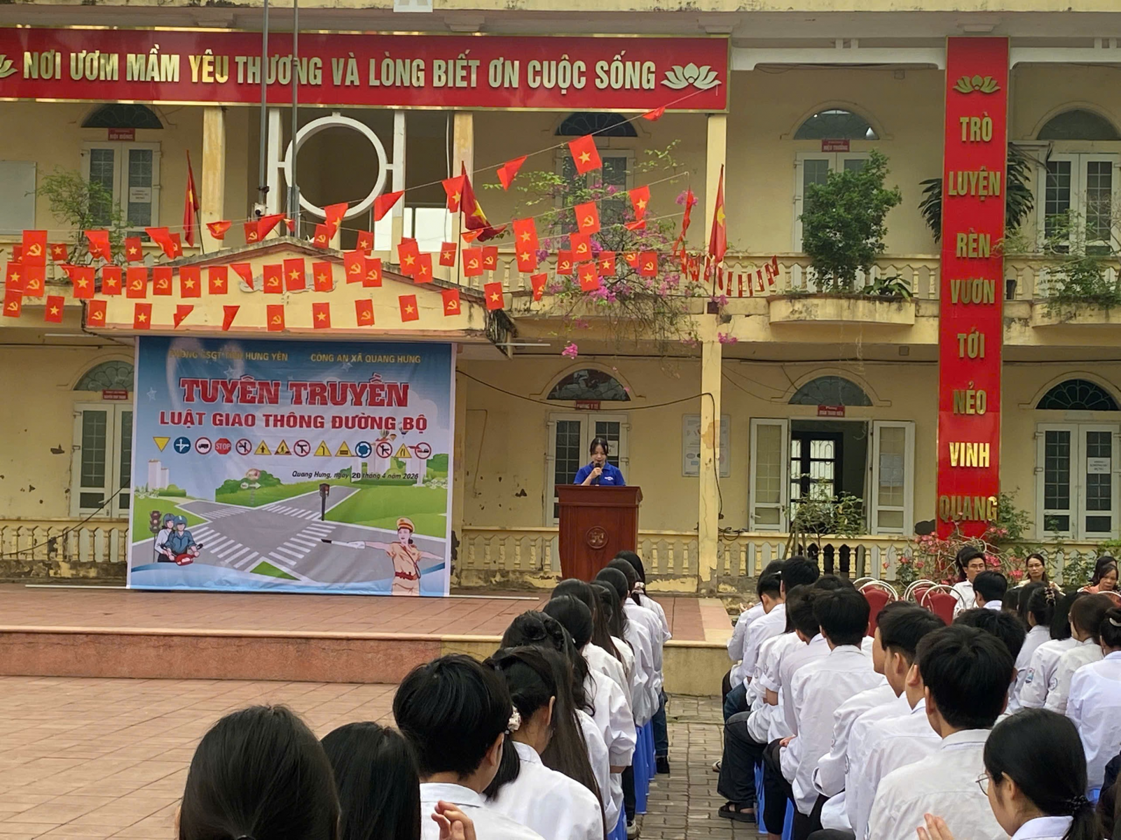 Tham dự chương trình Tuyên truyền Luật giao thông đường bộ, về phía Công an tỉnh Hưng Yên có Đại úy Đỗ Văn Dồng - Tổ trưởng Phòng cảnh sát giao thông cùng Đại úy Phạm Gia Thanh; về phía Công an Xã Quang Hưng có Đại úy Trần Mạnh Tuấn - Cán bộ Phòng cảnh sát trật tự. Về phía nhà trường có sự hiện diện của thầy giáo Dương Văn Long - Bí thư chi bộ, Hiệu trưởng nhà trường cùng toàn thể các cán bộ, giáo viên, nhân viên trong trường và khoảng hơn 1400 học sinh của ba khối lớp. Sự hiện diện đông đủ của thầy và trò đã thể hiện thái độ nghiêm túc, sự quan tâm sâu sắc của Lãnh đạo nhà trường đối với công tác giáo dục an toàn giao thông.