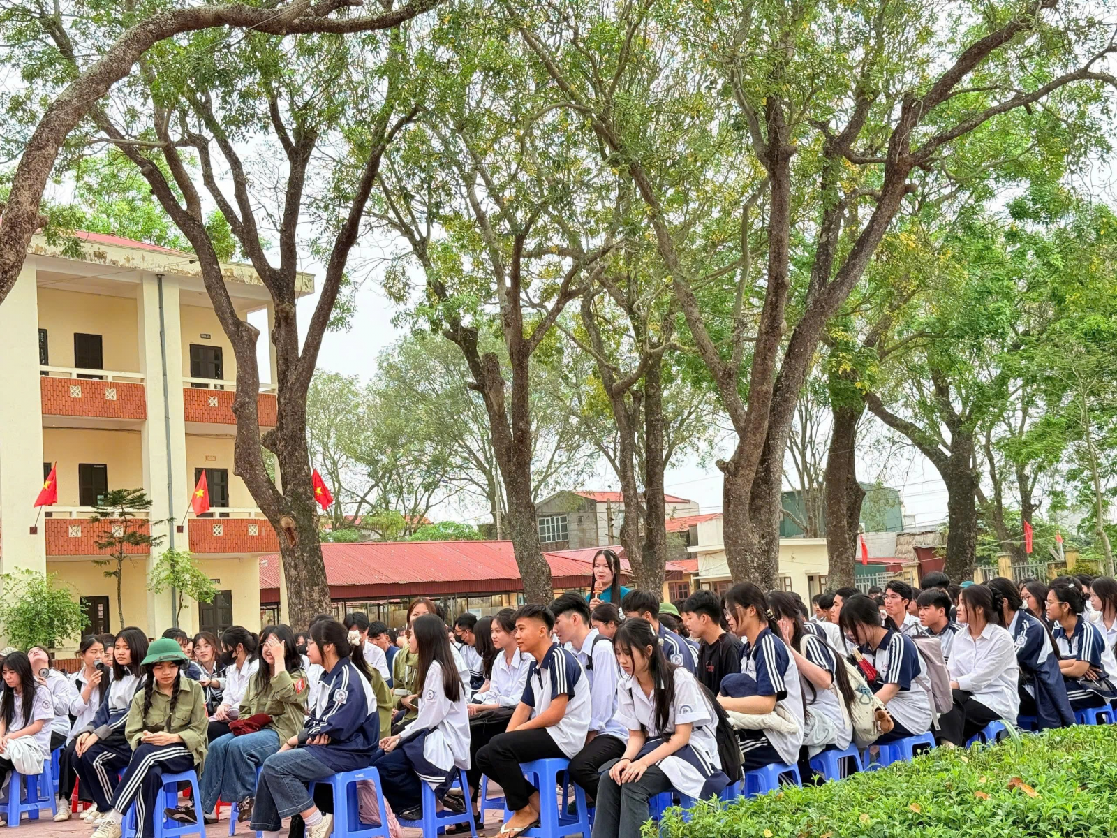 Chương trình diễn ra trong không khí trang trọng với sự hiện diện của thầy Dương Văn Long - Bí thư Chi bộ, Hiệu trưởng nhà trường, cùng các thầy cô trong Ban chuyên môn, giáo viên chủ nhiệm, giáo viên giảng dạy ôn thi và hơn 400 học sinh khối 12.