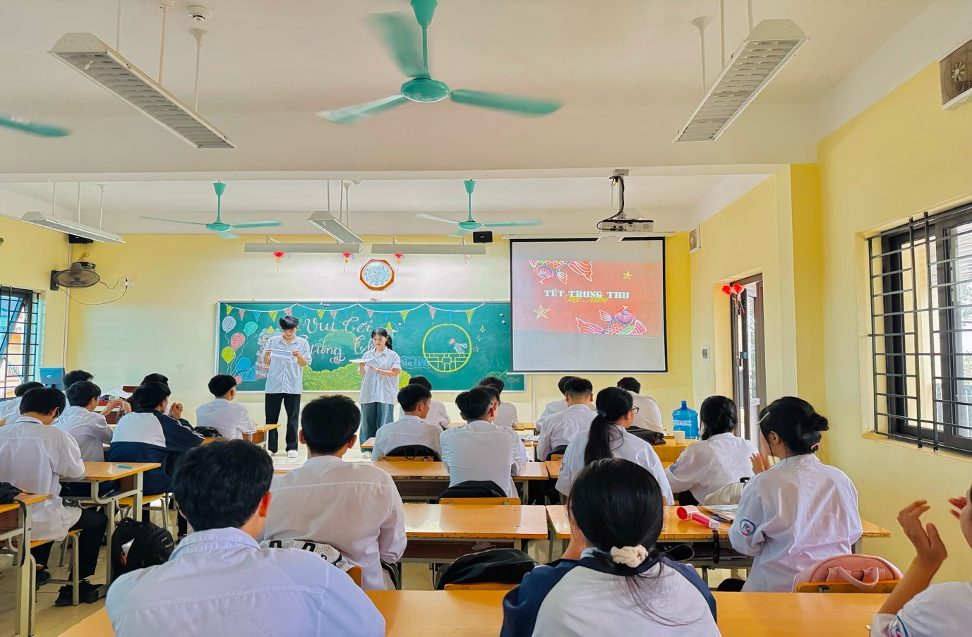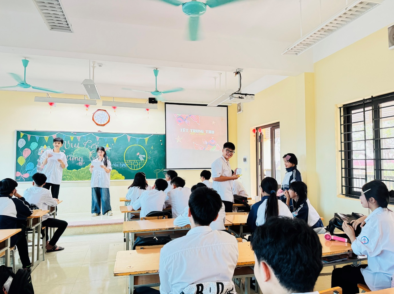 Chương trình được mở đầu bằng tiết mục văn nghệ đặc sắc do bạn Doãn Đức Thiện thể hiện, với ca khúc Chú Cuội ngồi gốc cây đa rộn ràng, mang đậm sắc màu Trung thu. Giai điệu vui tươi cùng giọng hát truyền cảm của bạn đã khiến cả lớp hòa mình trong bầu không khí ấm áp, rộn ràng như chính ánh trăng đêm rằm. Ngay sau tiết mục văn nghệ, chương trình “Vui Tết Trung thu” chính thức bắt đầu với sự dẫn dắt duyên dáng và năng động của hai MC Đoan Trang và Đức Thiện. Giọng nói tự tin, truyền cảm cùng sự phối hợp ăn ý của hai bạn đã mang đến một bầu không khí vui tươi, gần gũi và lôi cuốn, giúp chương trình hấp dẫn ngay từ những phút đầu tiên.